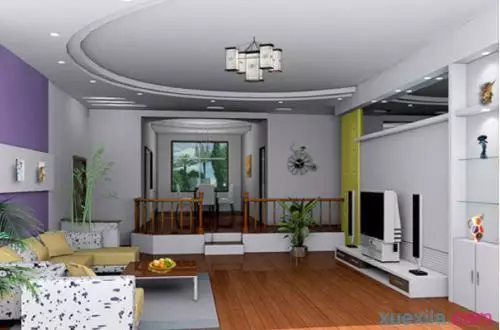 住宅的一般层高在3米左右,吊顶不要吊得太低,太低的吊顶会给人一种压迫感,会感觉有点儿透不过气。吊顶可以采用四边低中间高的造型,这样在视觉上会显得开阔一些,而从风水的角度而言,吊顶中间的凹位会形成一个聚水天池,对住宅是大有裨益的。